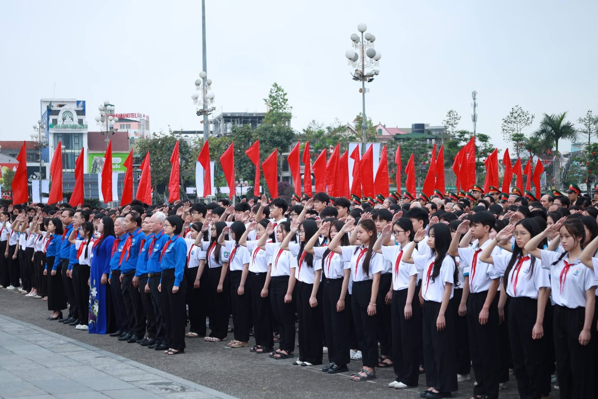 Nghi thức chào cờ thiêng liêng không chỉ thể hiện tinh thần đoàn kết, lòng tự hào dân tộc mà còn là dịp để các thế hệ cán bộ Đoàn cùng nhìn lại chặng đường phát triển vẻ vang của tổ chức Đoàn TNCS Hồ Chí Minh trong suốt 95 năm qua.