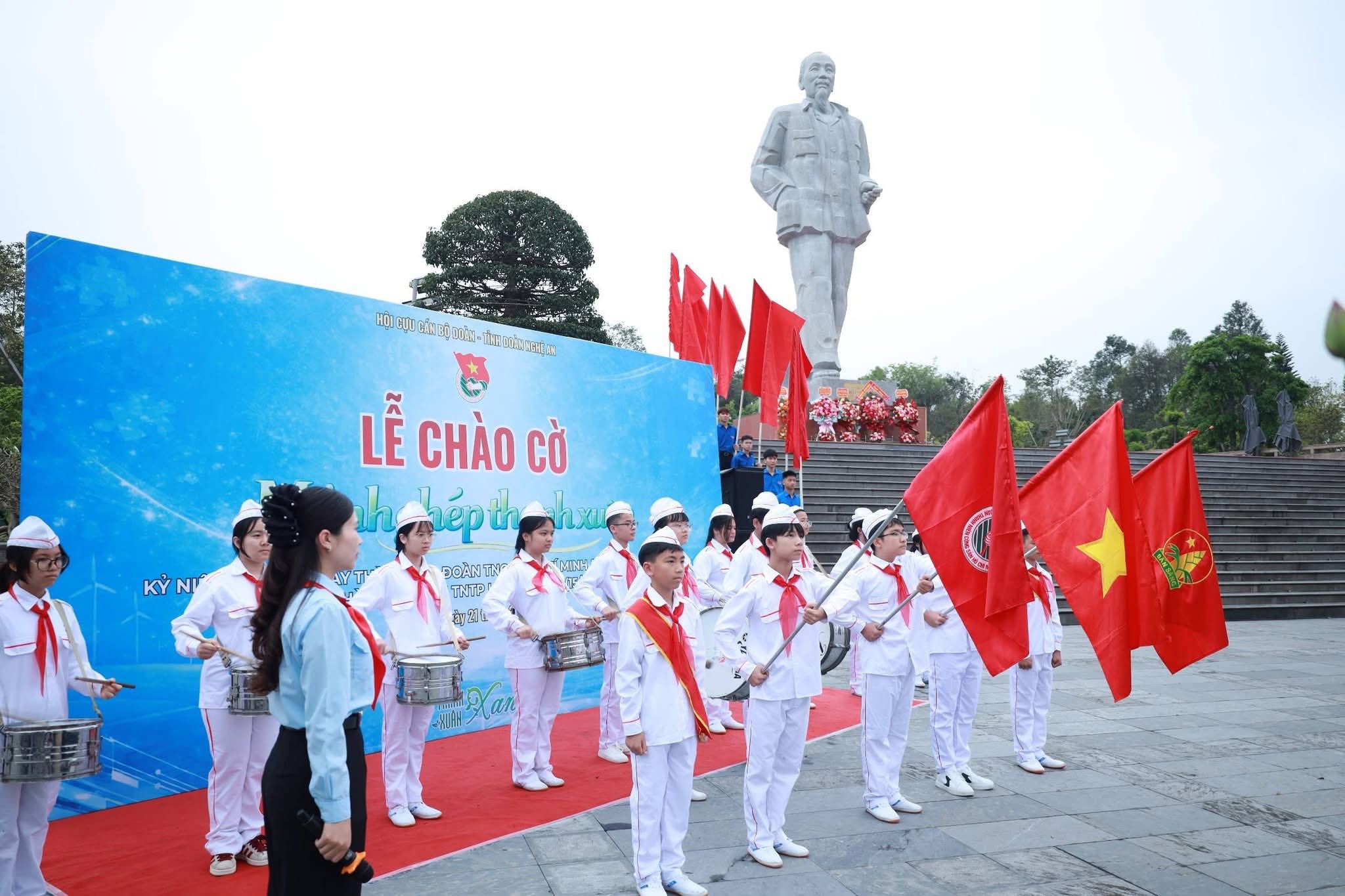 Trong không khí trang nghiêm và đầy tự hào, sáng 21/3 Tỉnh đoàn - Hội đồng Đội tỉnh Nghệ An tổ chức Lễ chào cờ “Mảnh ghép thanh xuân” tại Quảng trường Hồ Chí Minh và Tượng đài Bác Hồ với sự tham gia của 1.950 đoàn viên, thanh niên, cán bộ Đoàn qua các thời kỳ cùng 850 đội viên và giáo viên Tổng phụ trách Đội trên địa bàn tỉnh.