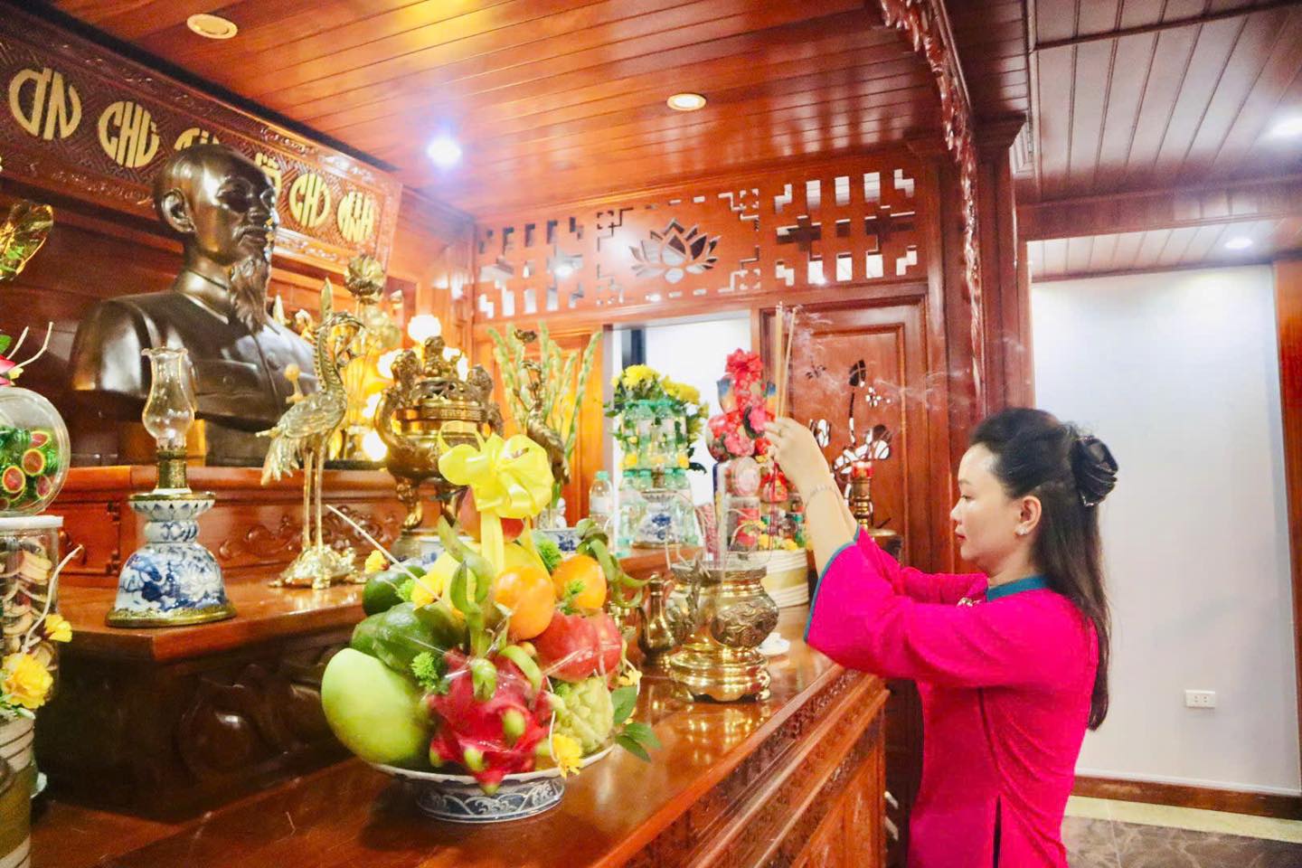 Đ/c Nguyễn Thị Lan Hương, bí thư Chi bộ, Trưởng ban thành tâm dâng nén hương thơm lên anh linh Người