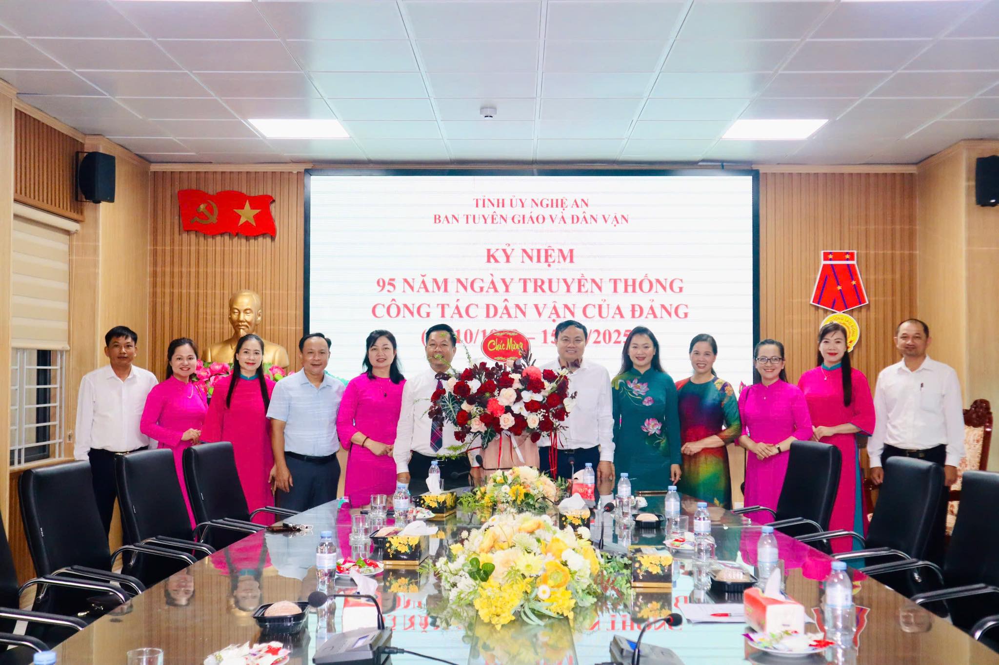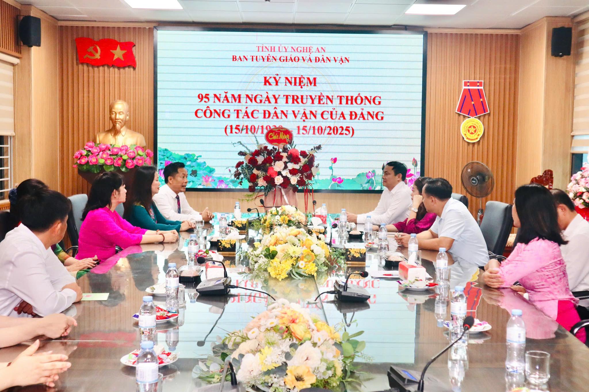 Nhân dịp kỷ niệm 95 năm Ngày Truyền thống công tác Dân vận của Đảng (15/10/1930 – 15/10/2025), Ban Quản lý Quảng trường Hồ Chí Minh đã đến tặng hoa, gửi lời chúc mừng Ban Tuyên giáo và Ban Dân vận Tỉnh ủy Nghệ An.