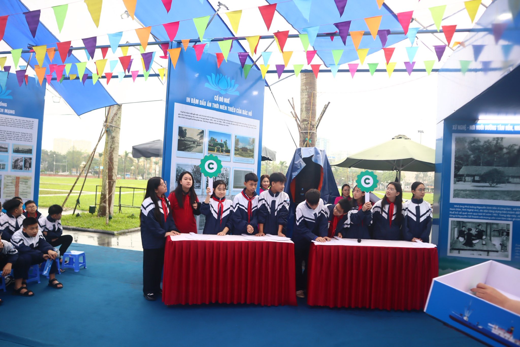 Hai đội tham gia phần thi trả lời câu hỏi tìm hiểu kiến thức về Bác