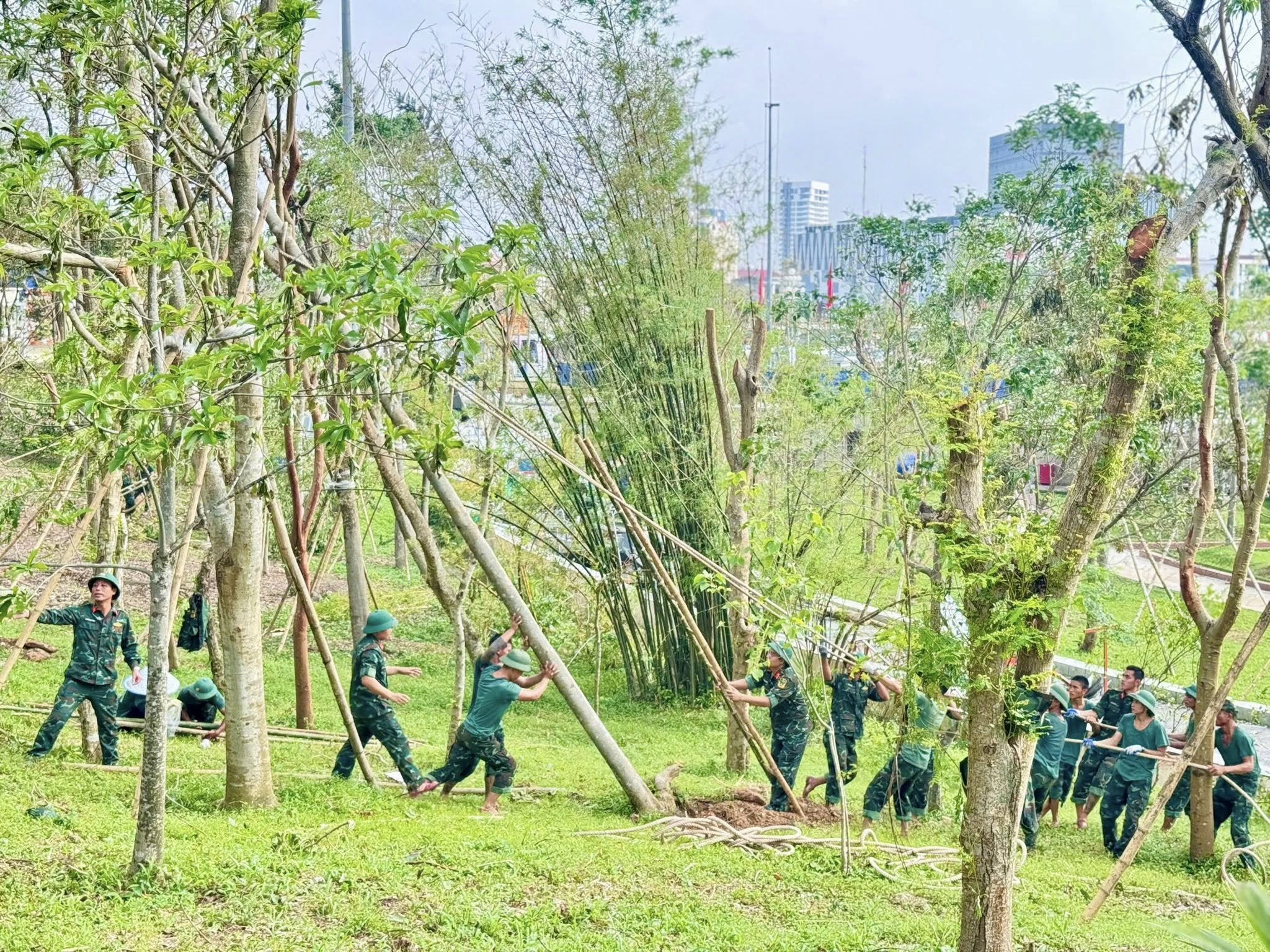 Trong hai ngày 30 - 31/9, các lực lượng phối hợp gồm: Lữ đoàn Thông tin 80 (Quân khu 4), Lữ đoàn Phòng không 283; Trung đoàn 764 (Bộ CHQS tỉnh), Công an tỉnh và Công ty Cổ phần Quản lý và Xây dựng đường bộ 470 đã huy động nhân lực, phương tiện, tích cực khắc phục thiệt hại do bão số 10 gây ra tại Quảng trường Hồ Chí Minh.
