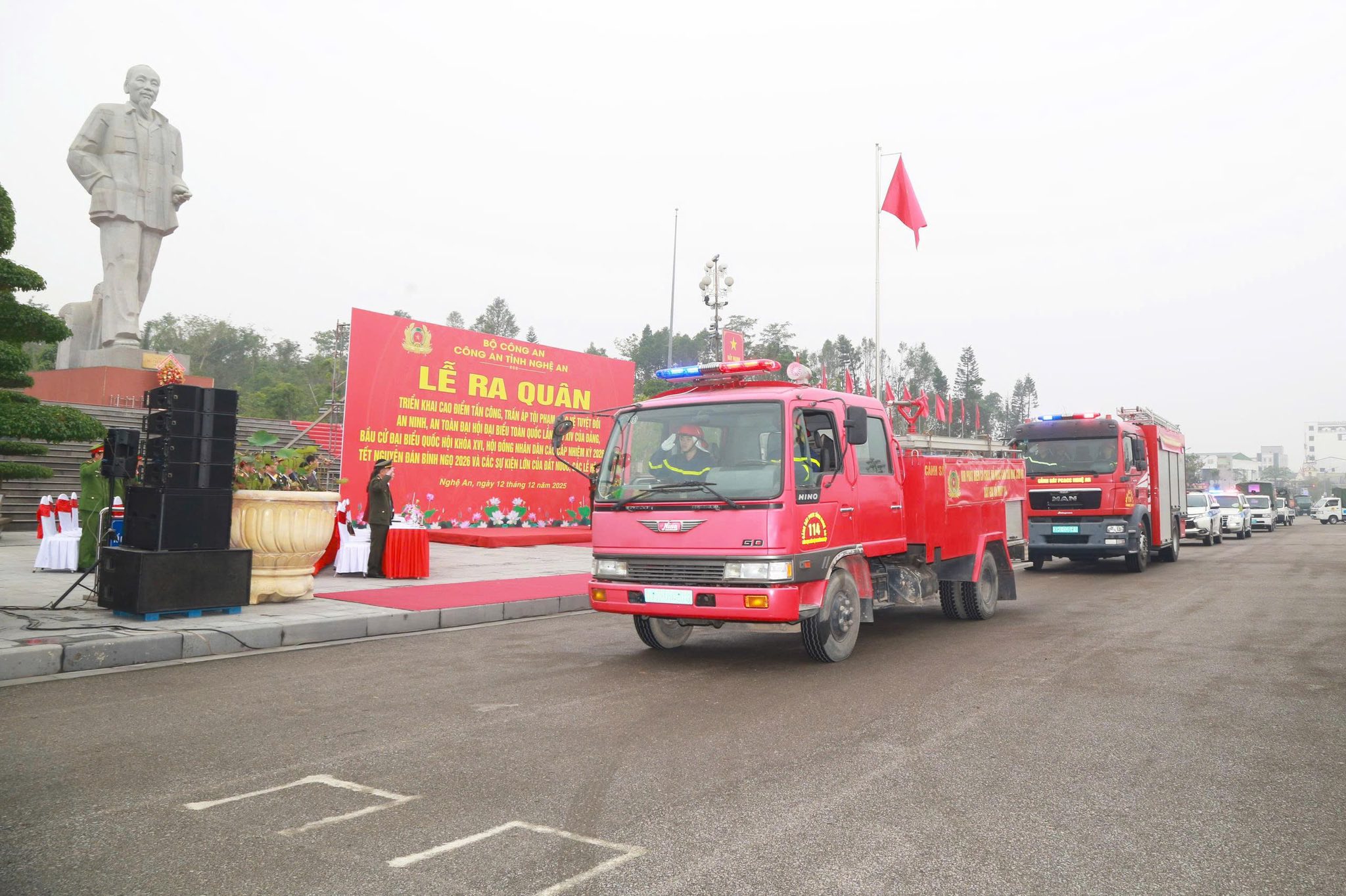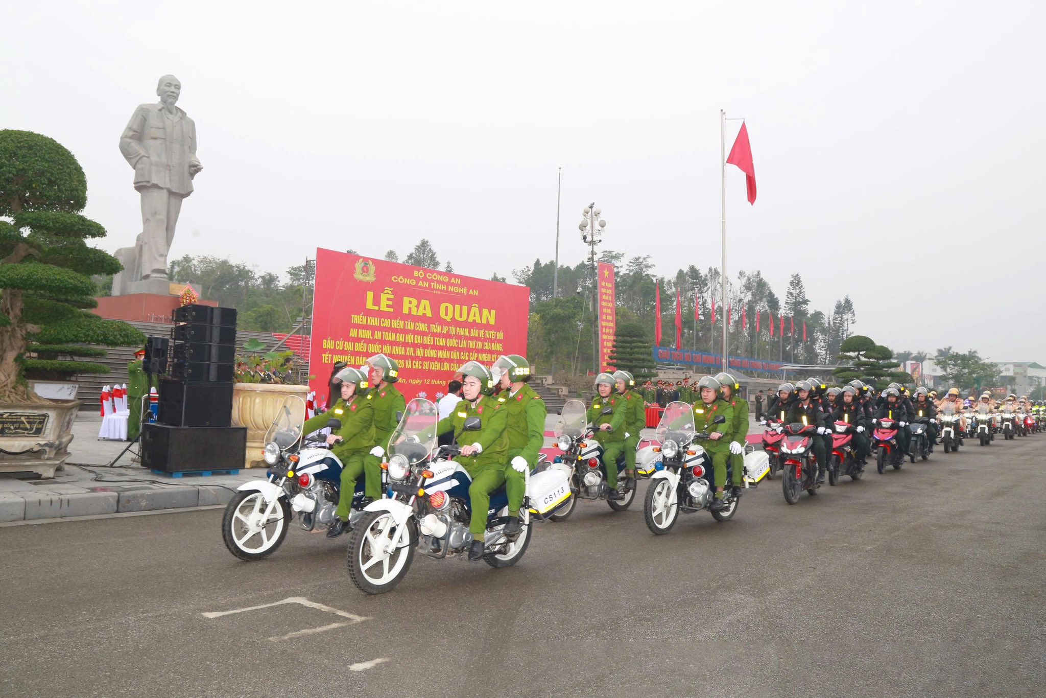 Sáng ngày 12/12/2025 tại Quảng trường Hồ Chí Minh, Công an Tỉnh Nghệ An tổ chức Lễ ra quân triển khai đợt cao điểm tấn công, trấn áp tội phạm, bảo vệ tuyệt đối an ninh, an toàn Đại hội Đại biểu toàn quốc lần thứ XIV của Đảng, bầu cử đại biểu Quốc hội khóa XVI, Hội đồng nhân dân các cấp nhiệm kỳ 2026-2031,Tết nguyên đán Bính Ngọ năm 2026 và các sự kiện lớn của đất nước, các lễ hội đầu năm