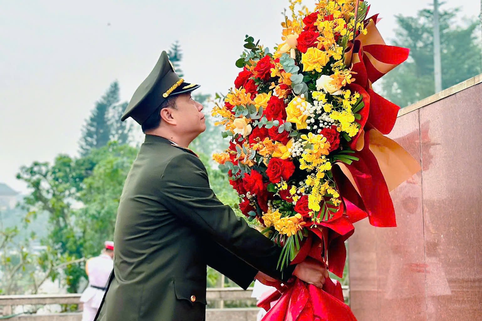 Trước khi khai mạc buổi lễ, Đoàn đại biểu Công an tỉnh dâng hoa, dâng hương tưởng niệm Chủ tịch Hồ Chí Minh tại Quảng trường mang tên Người