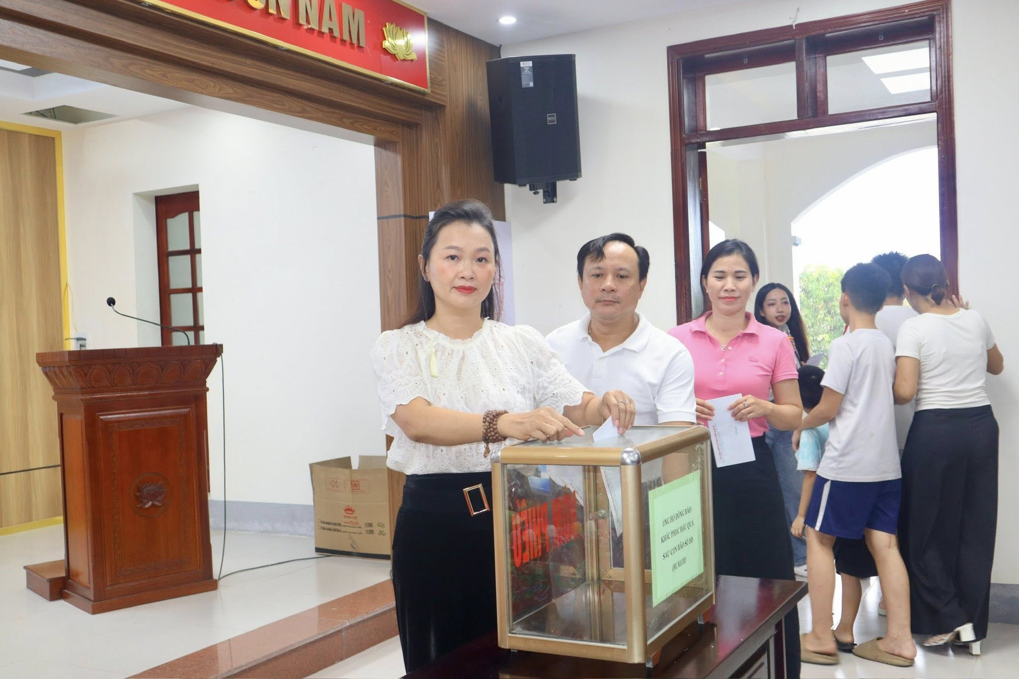 Các cháu cùng bố mẹ đã quyên góp, ủng hộ đồng bào miền Trung bị thiệt hại do cơn bão số 10 gây ra