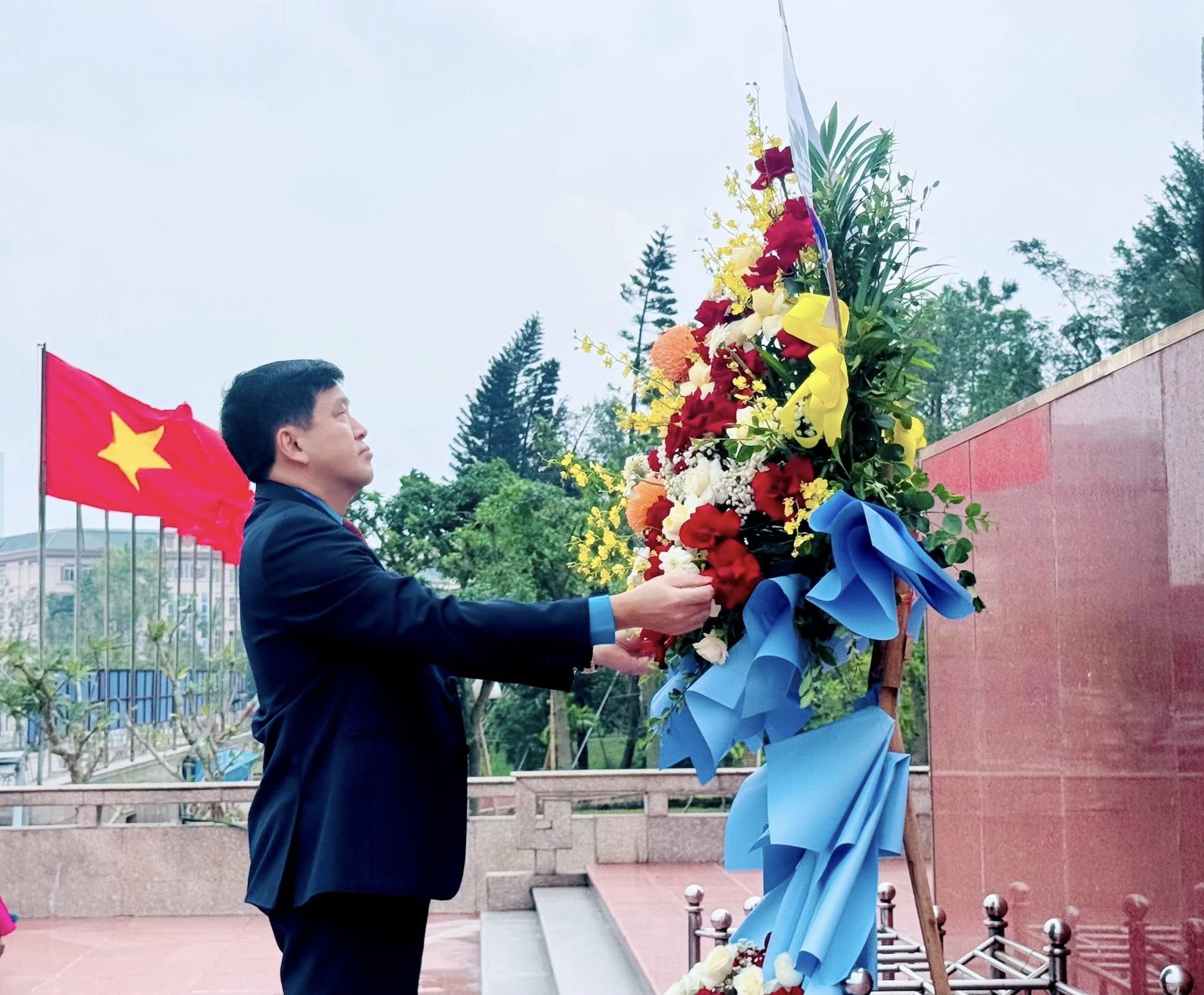 Đ/c Kha Văn Tám, UV BCH Đảng bộ Tỉnh, Chủ tịch Liên đoàn lao động tỉnh Nghệ An khóa XIX, nhiệm kỳ 2023 - 2028 thành kính dâng lẵng hoa tươi thắm lên anh linh Chủ tịch Hồ Chí Minh