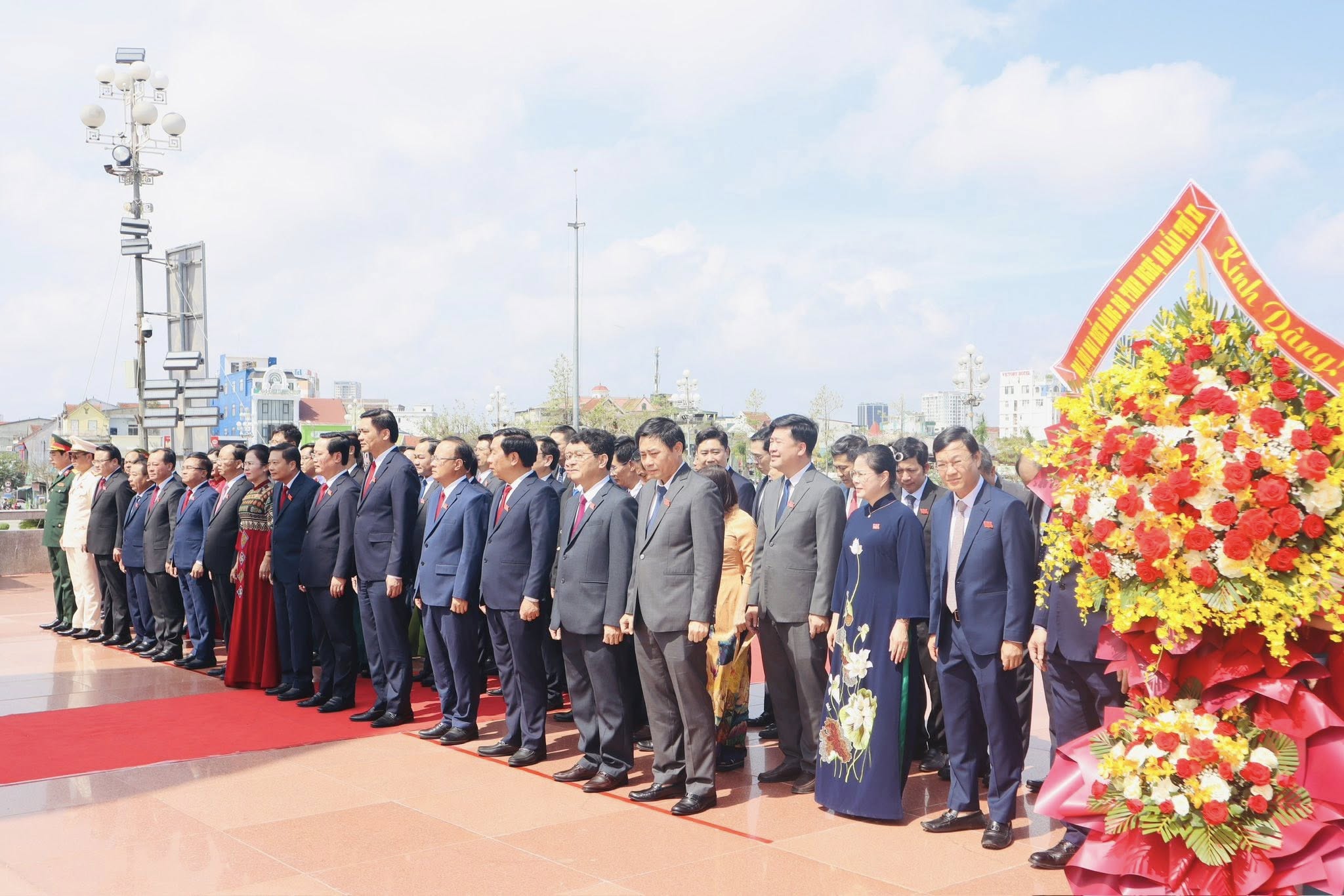 Đoàn đại biểu Ban Chấp hành Đảng bộ tỉnh khóa XIX và Trưởng các đoàn đại biểu, đại diện cho 500 đại biểu chính thức dự Đại hội thành kính dâng lẵng hoa tươi thắm trước anh linh Chủ tịch Hồ Chí Minh