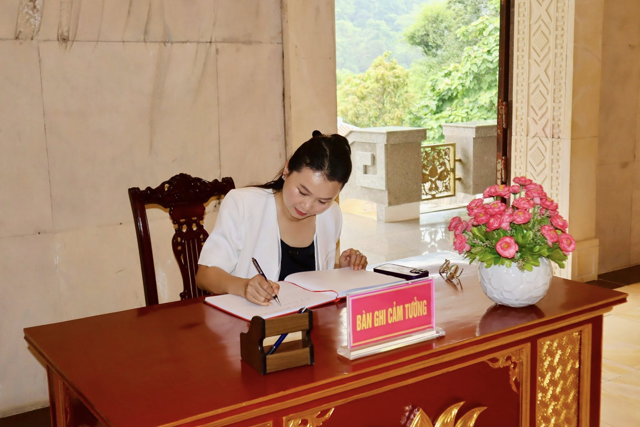Điểm dừng chân đầu tiên của đoàn là Đền thờ Chủ tịch Hồ Chí Minh trên ngọn núi Tếnh Chấy linh thiêng. Trong không khí trang nghiêm, đoàn đã thành kính dâng hoa, dâng hương trước anh linh của Người. Ngôi đền với kiến trúc nhà sàn cách điệu độc đáo là nơi lưu giữ tình cảm sắt son của đồng bào các dân tộc Cao Bằng đối với vị Cha già dân tộc, đồng thời là địa chỉ đỏ giáo dục truyền thống cách mạng cho các thế hệ.