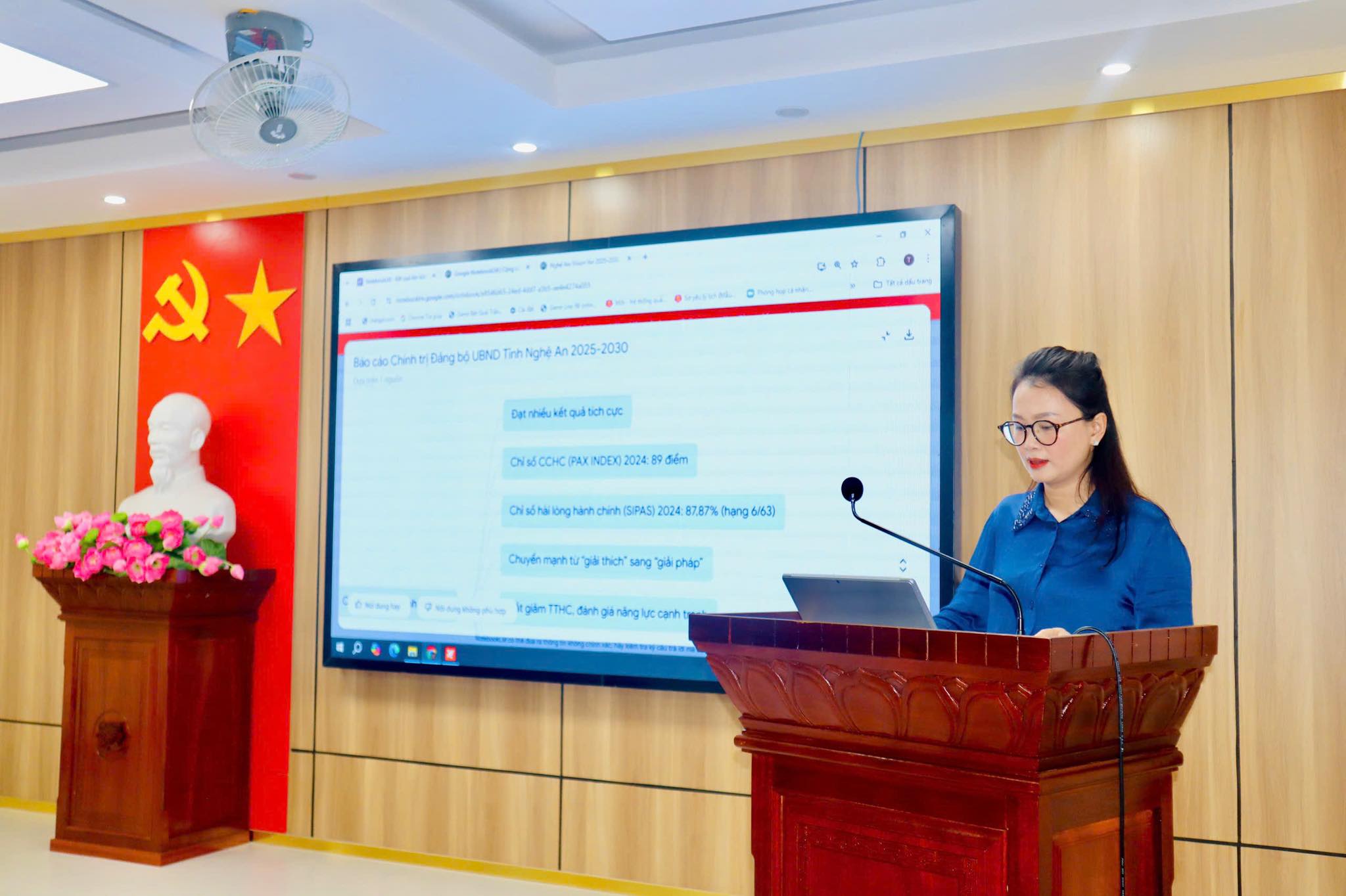 Điểm nhấn của Hội nghị là việc ứng dụng công nghệ AI vào quá trình truyền đạt và minh họa nội dung nghị quyết, văn bản pháp luật, giúp thông tin trở nên trực quan, sinh động, dễ tiếp nhận hơn. Các sản phẩm số hóa và kết quả bước đầu ứng dụng AI được cán bộ, viên chức và người lao động trình bày trực tiếp tại hội nghị cho thấy sự đổi mới mạnh mẽ trong phương pháp làm việc.