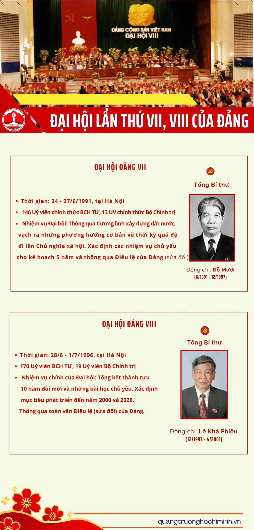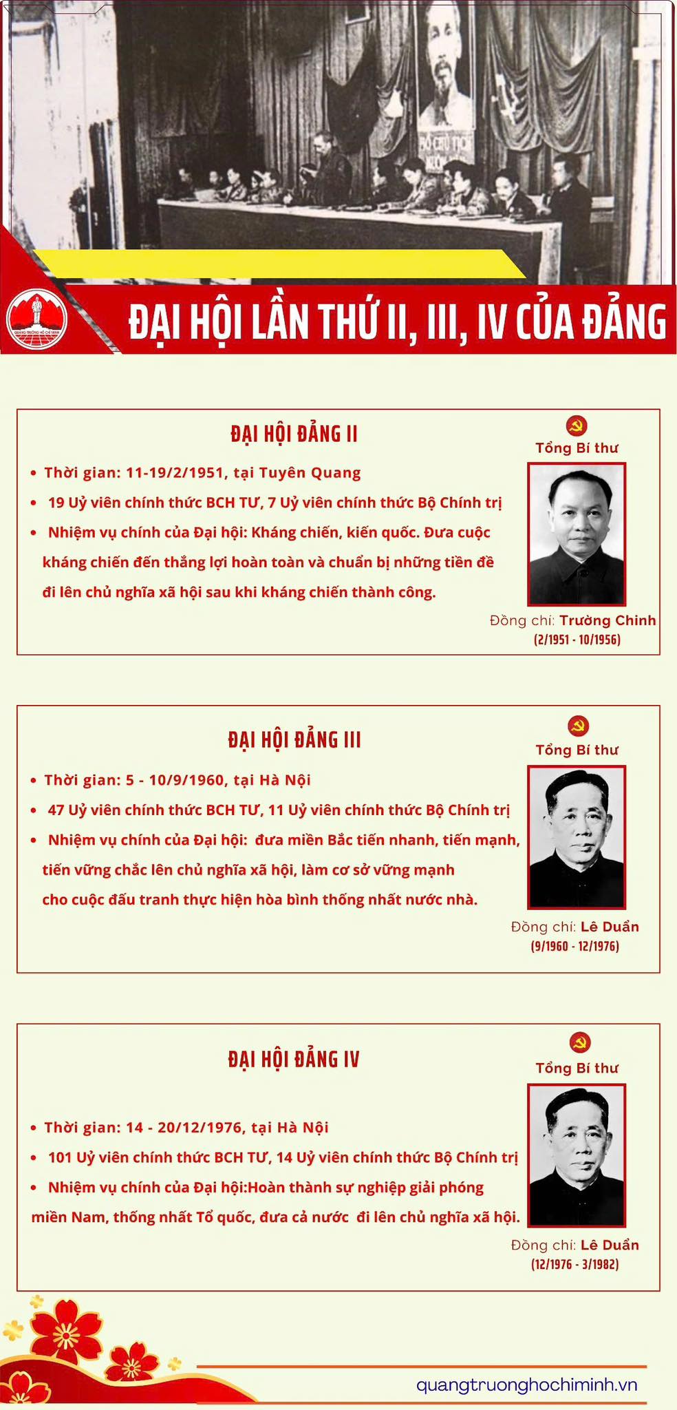 Trải qua 13 kỳ Đại hội, Đảng Cộng sản Việt Nam không ngừng khẳng định vai trò lãnh đạo đối với sự nghiệp cách mạng của dân tộc. Mỗi kỳ Đại hội là một dấu mốc quan trọng, ghi nhận những thành tựu đạt được, đồng thời đề ra đường lối, chủ trương phù hợp với yêu cầu phát triển đất nước trong từng giai đoạn.