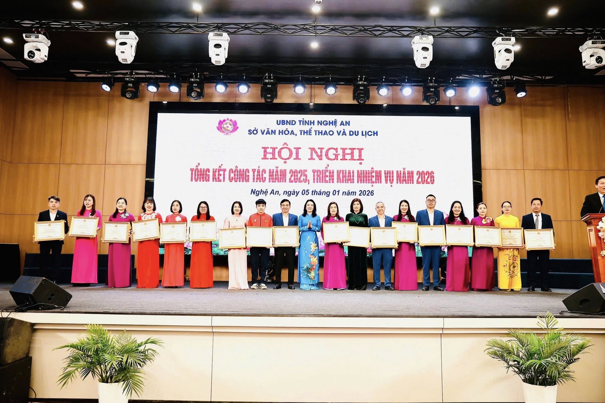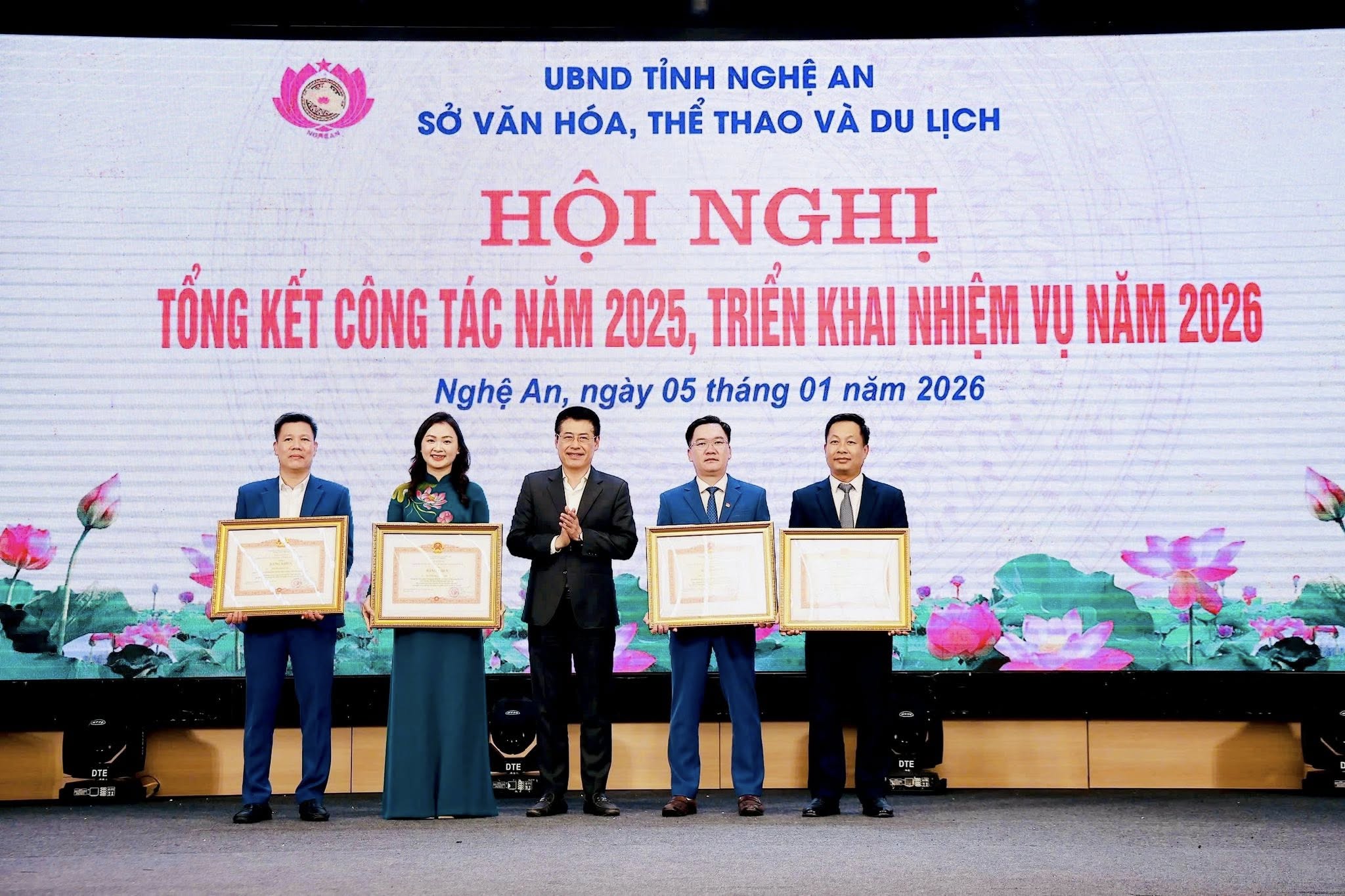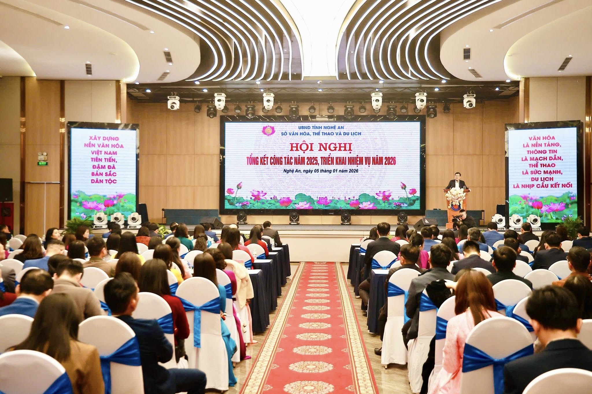 Chiều nay, ngày 5/1, Ngành Văn hóa, Thể thao và Du lịch Nghệ An đã tổ chức Hội nghị Tổng kết công tác năm 2025, triển khai nhiệm vụ năm 2026. Đây là dịp quan trọng để toàn ngành nhìn lại hành trình nỗ lực bền bỉ, đánh giá những kết quả đột phá và tôn vinh những giá trị cốt lõi đã tạo nên sức mạnh tổng hợp.