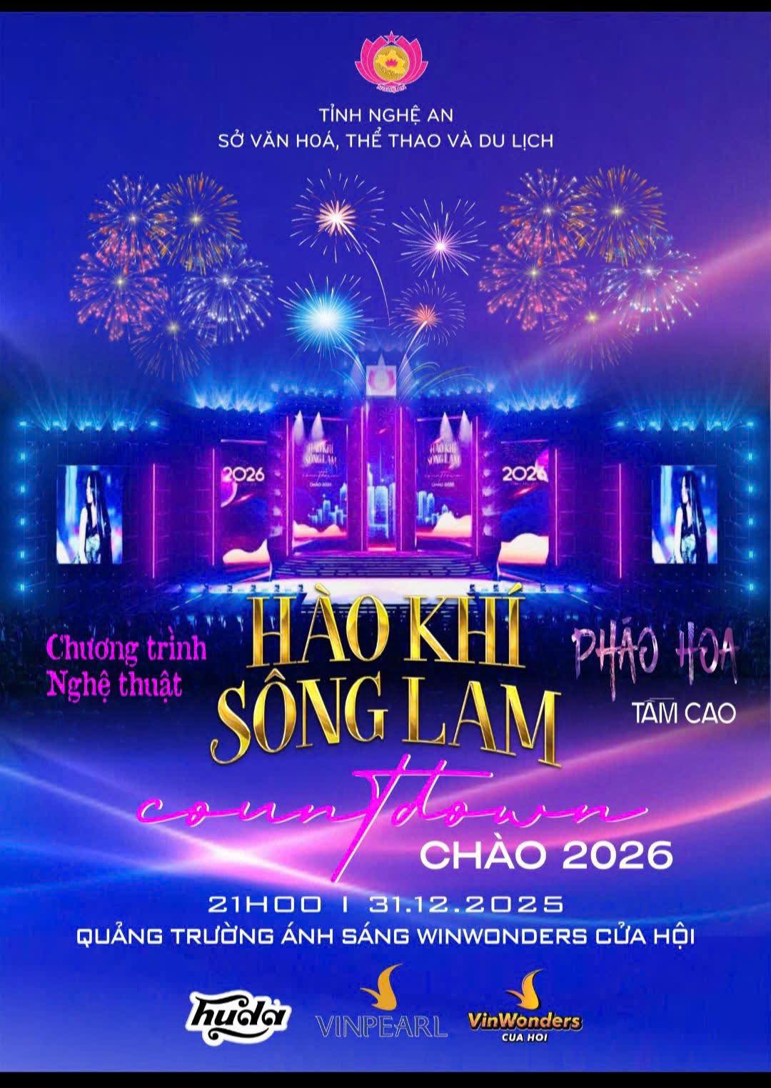 Tối 31/12/2025, Nghệ An chính thức “đốt nóng” đêm giao thừa với Chương trình nghệ thuật & bắn pháo hoa tầm cao chào năm mới 2026 tại VinWonders Cửa Hội, phường Cửa Lò - quần thể giải trí đẳng cấp quốc tế lớn nhất khu vực Bắc Trung Bộ!
