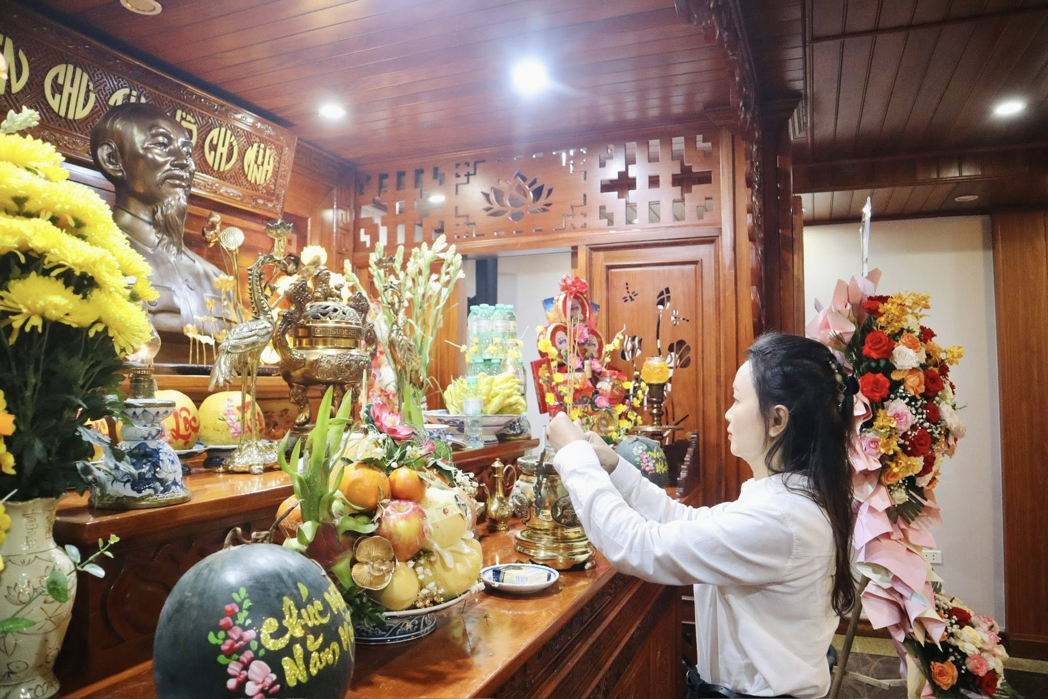 Trước giờ tổ chức trồng cây, đoàn đại biểu đã dâng hương, tưởng niệm tại bàn thờ Bác Hồ, bày tỏ lòng viết ơn vô hạn và sự kính trọng sâu sắc đối với công lao to lớn của Chủ tịch Hồ Chí Minh.
