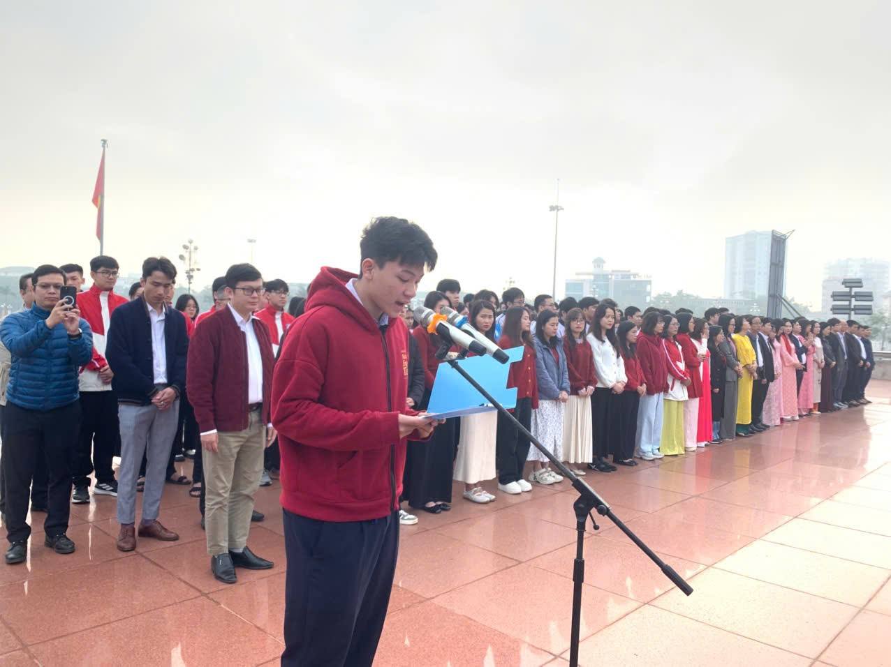 Trước giờ tham dự kỳ thi Học sinh giỏi Quốc gia - Quốc tế năm 2025 - 2026 tỉnh Nghệ An, tập thể giáo viên và các em học sinh trong đội tuyển của hai ngôi trường THPT chuyên Phan Bội Châu và THPT chuyên – Trường Đại học Vinh luôn là những lá cờ đầu của giáo dục Nghệ An đã đến Quảng trường Hồ Chí Minh dâng những đoá hoa tươi thắm, nén hương thơm, thể hiện tinh thần quyết tâm học tập, rèn luyện và cống hiến xứng đáng với truyền thống hiếu học của quê hương.